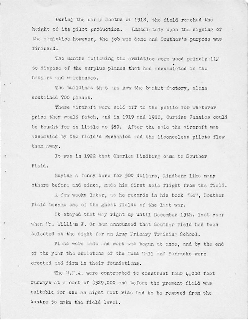 During WWII Souther Field in addition to being used